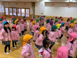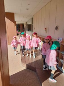 年中長組のお友達は階段の上り下りや通路を歩く時も年少さんを気に掛け、