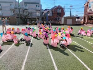 またホールと園庭では、一緒に回ったグループでレクリエーションを行い、