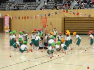 紅白に分かれた玉入れは、練習は白組が勝っていましたが、本番ではどんでん返しの紅組の勝ちとなりました!